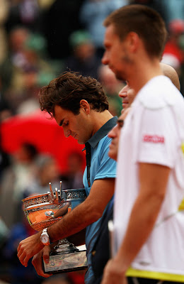 Ce qui est cool avec Roger (outre le fait qu'il joue comme un Dieu) , c'est que c'est un émotif. Quoi de plus beau qu'un sportif qui pleure? Mon premier souvenir de lui date de sa première vistoire en Grand Chelem, à Wimbledon, en 2003. Il n'arrivait pas à répondre au journaliste tellement il était submergé par les sanglots. Depuis ce jour, je l'aime, je le supporte.